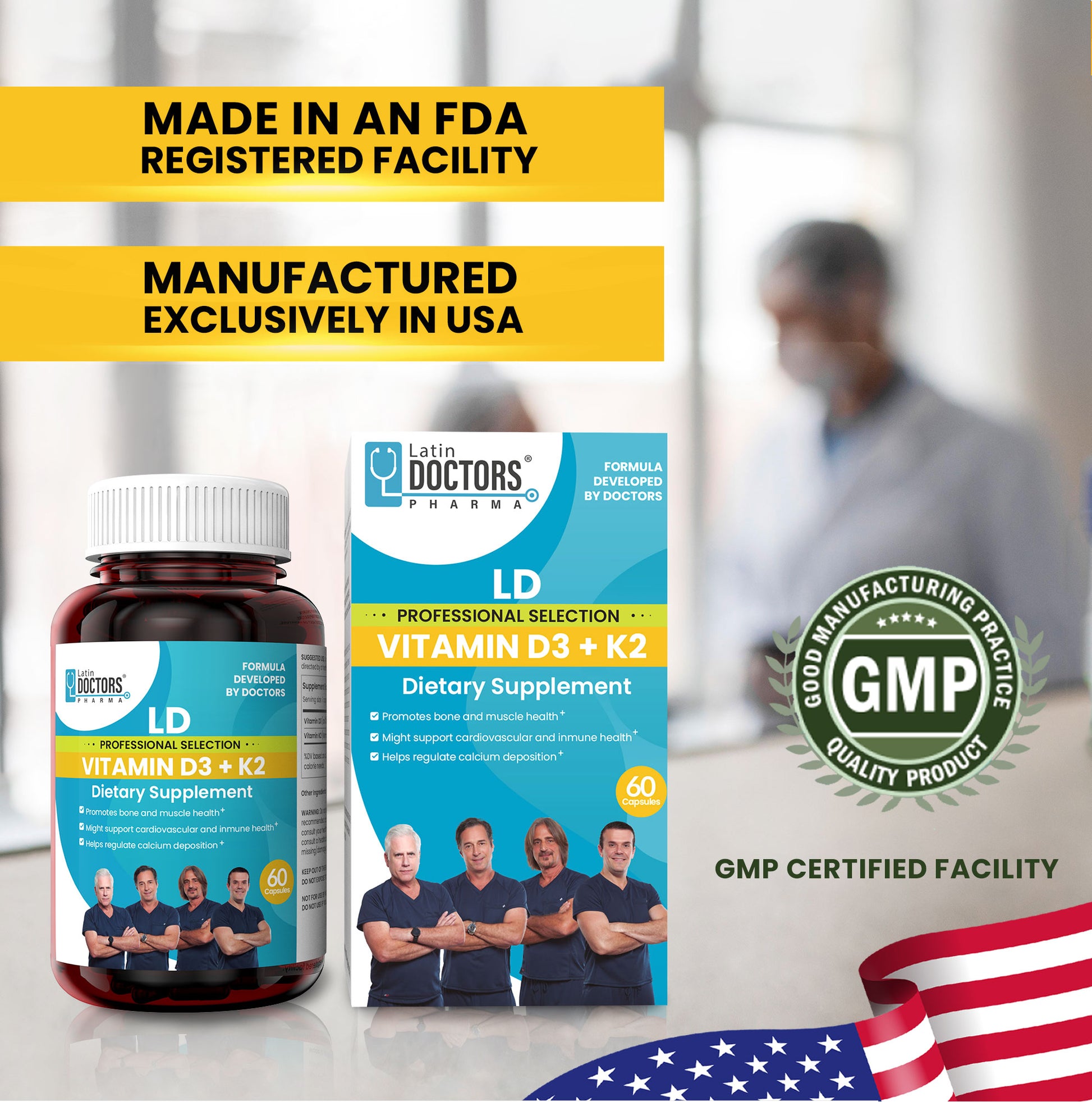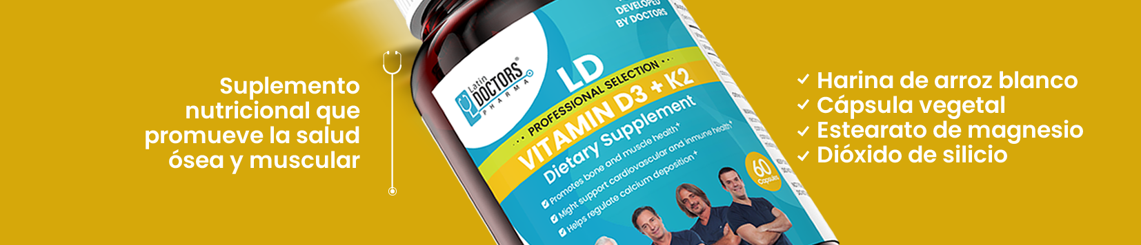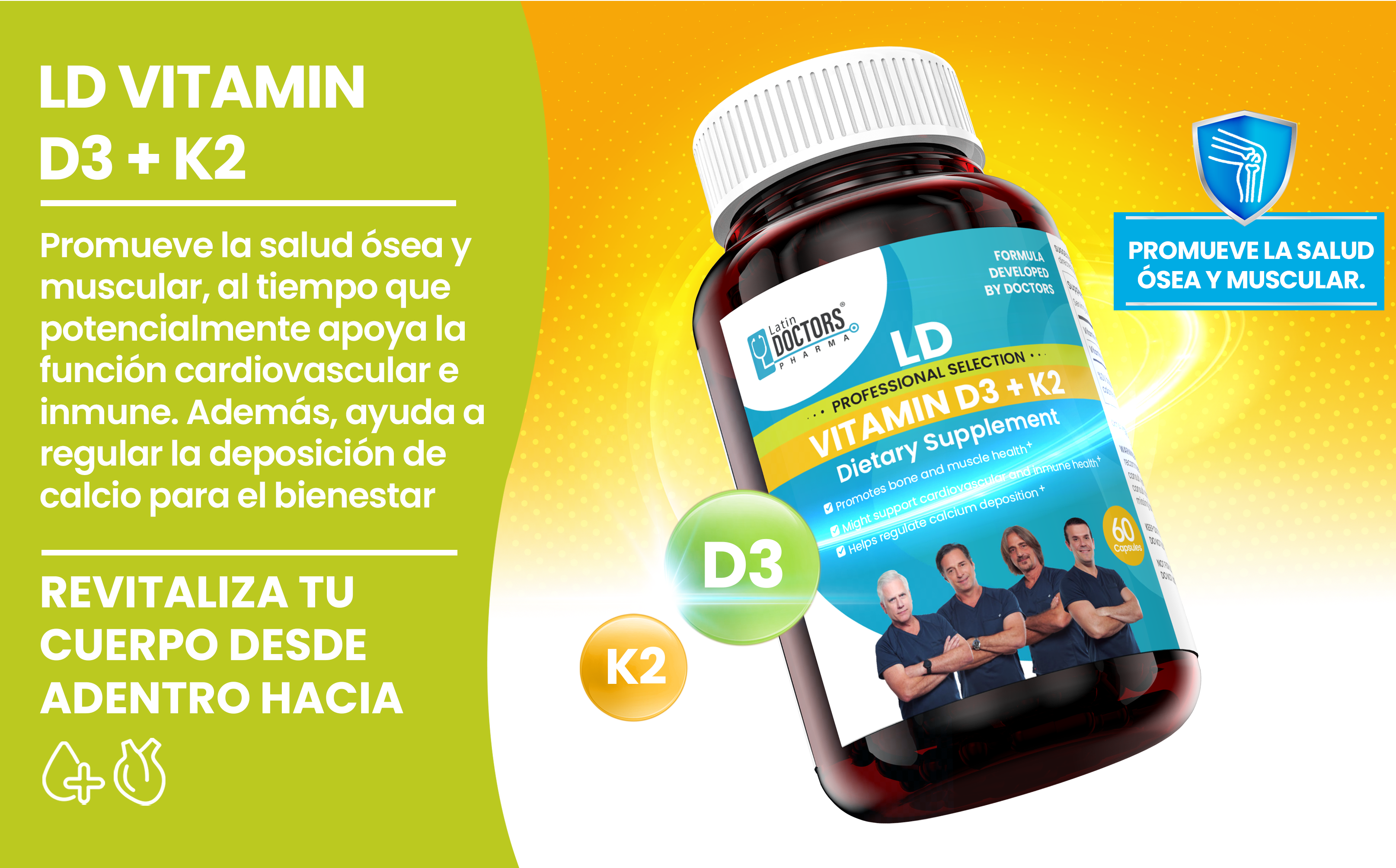 La vitamina K2 activa proteínas que desempeñan un papel en la coagulación sanguínea, el metabolismo del calcio y la salud cardiovascular. Una de sus funciones más importantes es regular la deposición de calcio, promoviendo la calcificación de los huesos y previniendo la calcificación de los vasos sanguíneos y los riñones. En Latin Doctors Pharma hemos formulado una combinación perfecta de vitaminas D3 y K2 para ayudar a mantener la salud ósea, cardiovascular y del sistema inmunológico.
