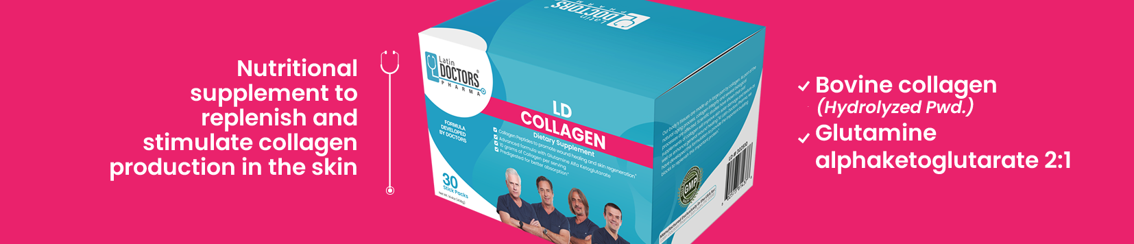 Our body’s tissues are made up in large part by collagen. As part of the natural aging process, collagen integrity and several biological processes are affected. Scientific studies have shown that oral supplements of collagen will improve skin solar damage and texture as well as enhance general wound healing+. At Latin Doctors Pharma, we have developed this formulation to provide the important building blocks to replenish this important protein.